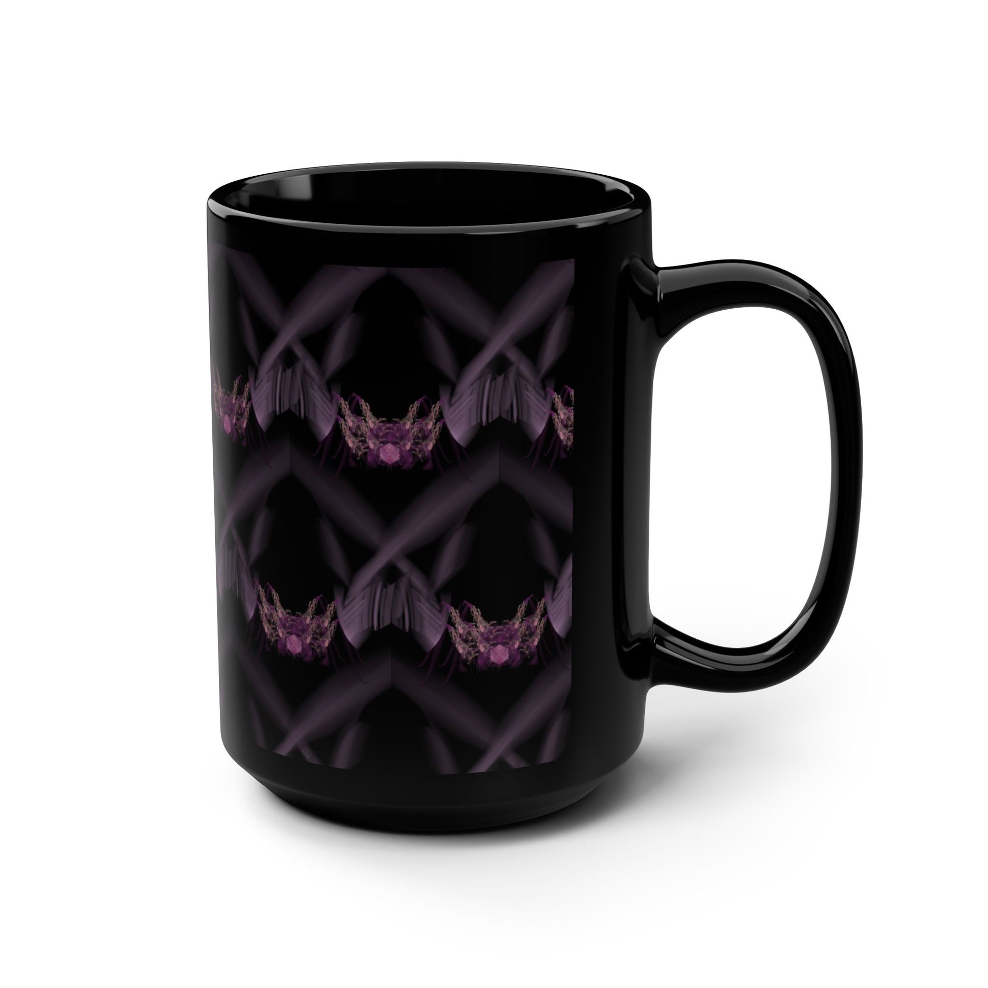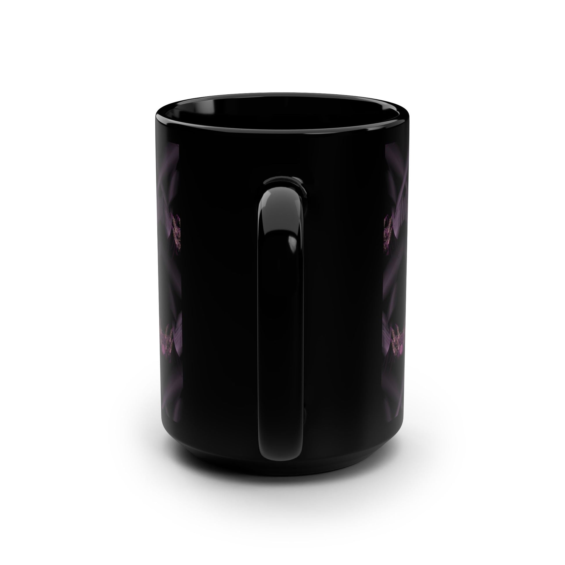 These black mugs come in one size – 15oz (0.44l) – plenty for morning caffeine boosts and hot cups of tea on a rainy day. This one is covered in a frame from Core Sample 02